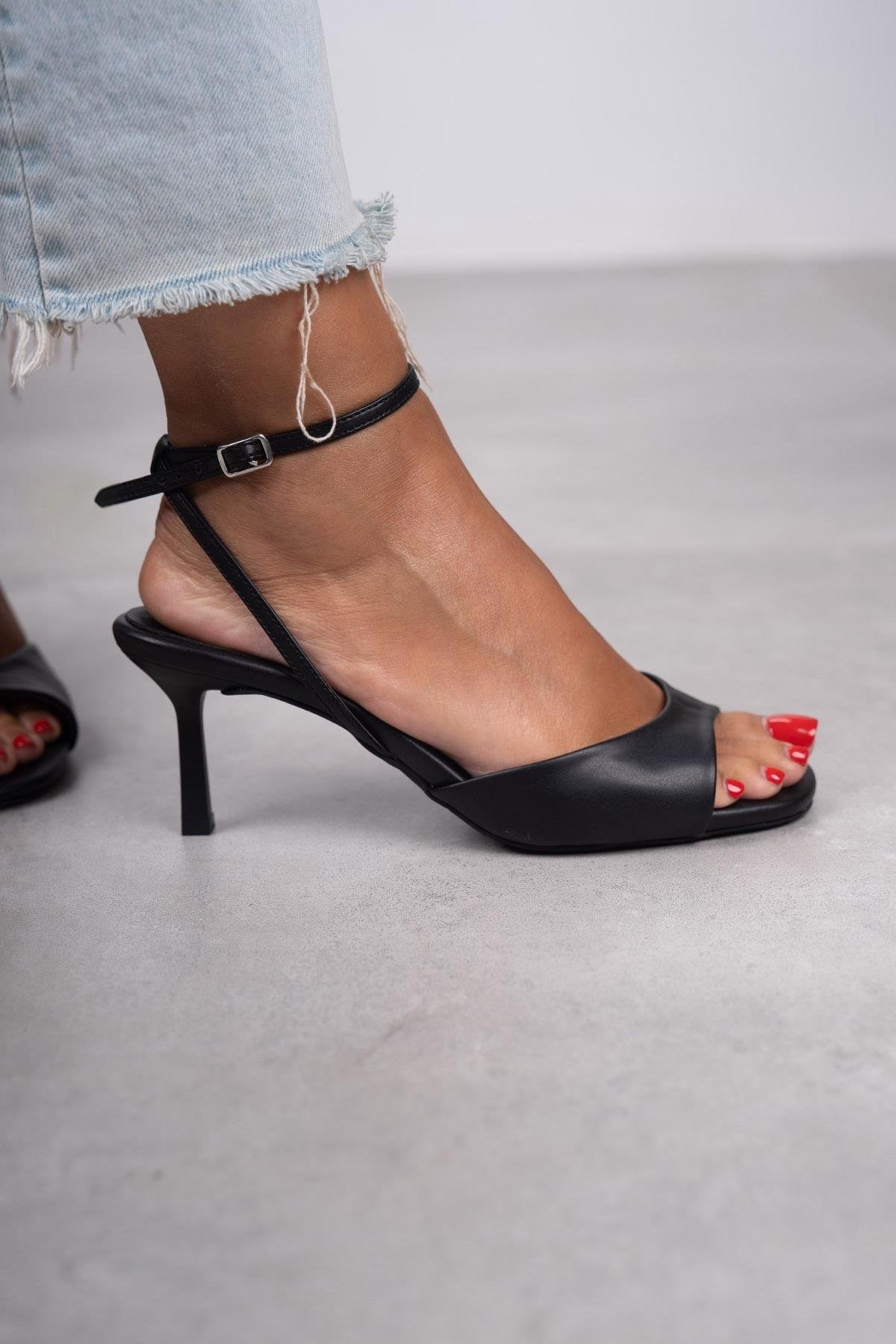 NİCE SANDALET SİYAH DERİ